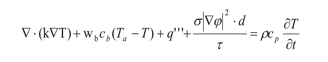 برای ارزیابی اثرات حرارتی ناشی از پالسهای الکتریکی، از معادله پنه استفاده شده که انتقال گرما در بافت زنده را مدل میکند: